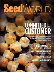 FEBRUARY20141FEB1404WHATSNEWINFLOWERSANDVEGETABLESAsamplingoffreshnewvarietiescomingtotheflowerandvegetablesector.08GENETICSANDCONSUMERSDRIVEVEGETABLEINNOVATIONSTechnologiesnewertovegetablebreedingandchangingconsumerpreferencesarehelpingshapetrendsinvegetablevarietydevelopment.12FLORICULTUREINDUSTRYPLAYSFAVORITESFamiliarflowervarietiesaregettingafaceliftthankstohomeandmarketgardenersdesireforreliableeasy-to-growvarieties.16THEGREATFLAVORHUNTTheproduceindustryislookingatvarietydevelopmentdifferentlyandyieldisnteverything.20ENSURINGSAFETYANDMARKETACCESSThedevelopmentandadoptionofinternationalphytosanitarystandardsishelpingensuresaferfoodandexpandedmarketaccess.24PROTECTINGPOLLINATORSRESOURCEGUIDEResourcesonpollinatorprotectiontosharewithyourstaffandseedcustomers.28ISBIGMONEYLEAVINGAGTheagricultureboomofrecentyearsattractedinvestorstoconsidercommoditiesaspartoftheirportfolioswhatschanged36MAINTAININGTHESEEDEXPORTSYSTEMTheU.S.NationalSeedHealthSystemisaidingtheinternationaltradeofseedsandglobalseedresearch.38GMOFOODLABELINGISSUESAFFECTVEGETABLEINDUSTRYSeedWorldcolumnistDennisThompsonexaminesthefoodfightsurroundingthelabelingofGMOs.DEPARTMENTS42STRATEGY46CROSSPOLLINATION50SINCE191554WORLDSTATUS56REGULATORYROUNDUP60INDUSTRYNEWS68GIANTVIEWS0412February2014SEEDWORLD.COMTrendsinvarietydevelopmentdemonstratetheflowerandvegetableseedindustrysconnectiontotheirend-users.FLORALFAVORITESWHATSOLDISNEWAGAININVESTINGINAGRICULTURENOTFORTHEFAINTOFHEARTFLAVORVS.YIELDGMOLABELINGCOMMITTEDCUSTOMERtotheOntheCoverThemulti-speciesFuseablesPrecisionMulti-PelletfromPanAmericanSeedofferscommercialgrowersreliabilityfromthepointofplanting.FuseablesPrecisionMulti-Pelletsensuremoreaccuracyaseachcomponentissowninthepelletinthequantitiesrequired.AccordingtoPanAmericanSeedFuseablesisthefirst-everprofessional-qualitysingle-speciesandmulti-speciesmulti-pelletseed.