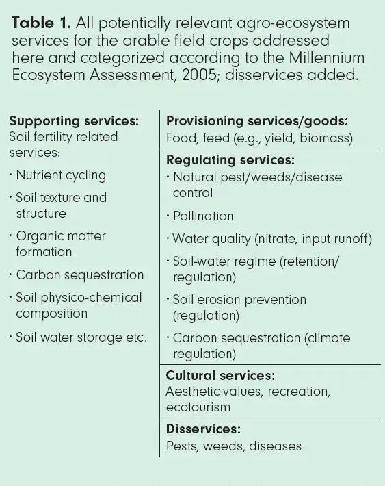 Our research project included authors and contributors who represent a diversity of sciences to elucidate the broader considerations. Sciences represented included agriculture, soil, crop production and protection, policy, landscape ecology, biodiversity, and ecosystem services. We undertook to analysing the existing, exhaustive literature on a wide range of ecological enhancement measures and to identify which of them provided value for use on European farmland holdings in addition to biodiversity benefits. To that end, we focused on easily implementable measures in the key arable field crops (cereals, including maize; oilseed rape; sunflower and soya), which make up 72 per cent of European (EU-27) arable crop land and on the measures’ impact on crop production-relevant agro-ecosystem services (e.g., soil fertility, pollination, pest control) (see table 1). These agro-ecosystem services are delivered by soil organisms, pollinators, and natural enemies of pests. Our paper identified those measures, which may support agro-ecosystem services provision upon which crop management depends and which at the same time have an acceptable cost-benefit ratio in terms of yield and/or farm profitability.