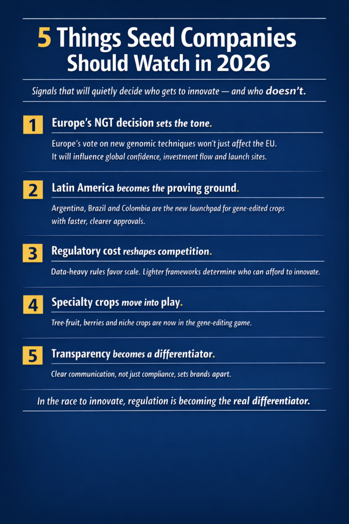 Frameworks that add cost, delay and uncertainty naturally advantage scale. The danger for the seed sector is that gene editing, a tool that could democratize breeding progress across crops and regions, instead becomes concentrated among the few players most able to carry regulatory weight.